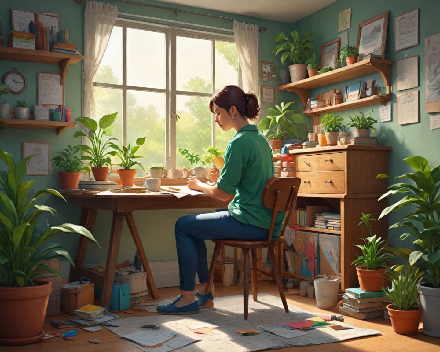 A personalização do ambiente, com elementos que promovam a serenidade e o conforto, como plantas ou arte visual, também pode criar um espaço mentalmente estimulante que favoreça o foco.